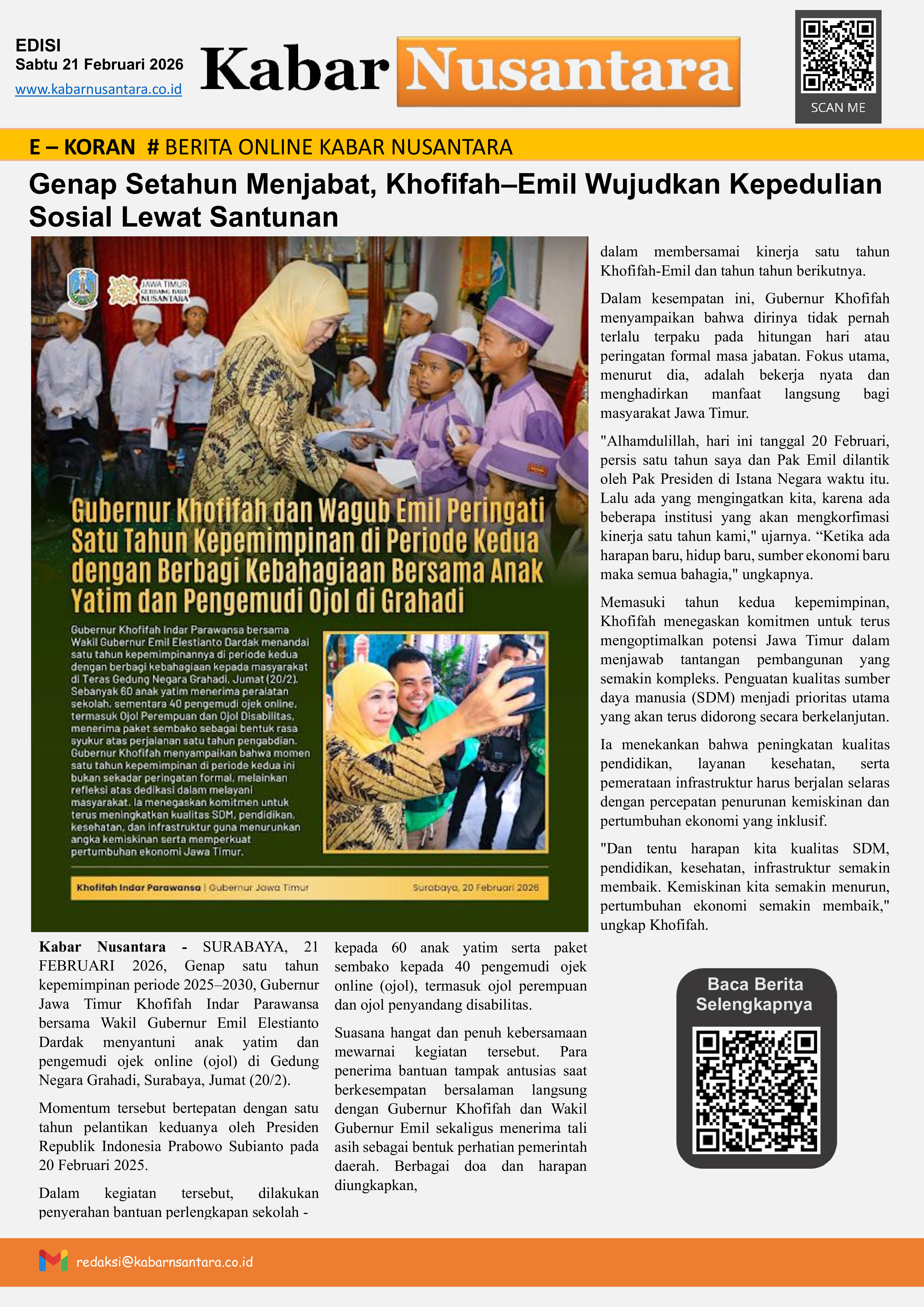 Genap Setahun Menjabat, Khofifah–Emil Wujudkan Kepedulian Sosial Lewat Santunan